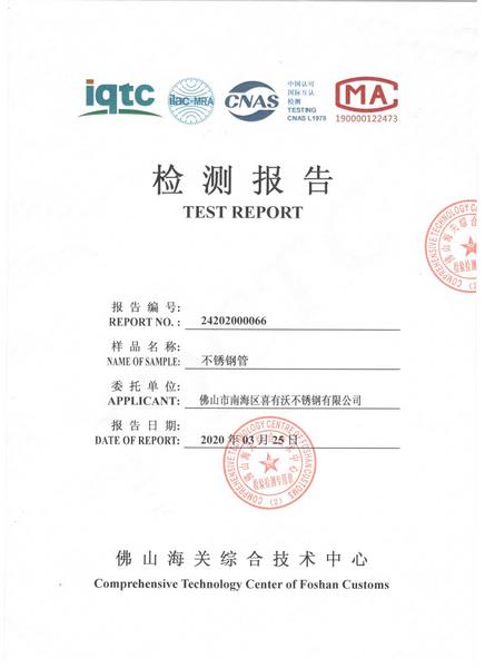 不锈钢管样品检验报告